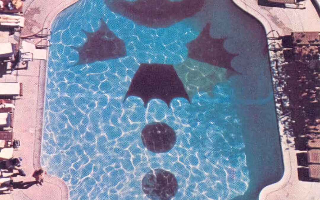 The original hotel pool at Circus Circus in Las Vegas. Someone said, “Hey, I have a great idea…” Sales of plastic bed sheets skyrocketed in 1972.